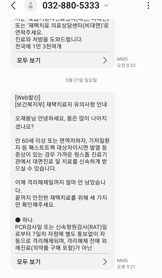 누워서 좀 쉬다가 검사받았다. 설마 했는데, 그 키트에서 두 줄이 뜰 때는 정말 믿기지 않았다. 내가 잘못 본 게 아닐까 했는데, 그러고 바로 의사 선생님께서 키트를 처분하길래 기분이 꿀꿀했다. 그러고는 간호원분이 오셔서 뭐라 뭐라 계속 얘기하시는데 솔직히 귀에 잘 안 들어왔다. 몸도 아프고 확진판정이 당황스럽고 혼란의 연속이어서 그랬을 것이다.