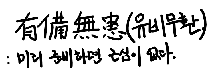 제 할아버지께서는 그래도 힘이 닿으시는 데까지 삼 남매를 엄격히 관리하고자 노력하신 것 같습니다. 평생을 초등학교 과학 선생님으로 재직하시고 슬하에 굉장한 교육자 자녀들을 남긴 할아버지께서는 젊은 시절의 그 칼 같은 판단과 엄한 꾸짖음을 그 조그마한 손주들에게 가끔씩 하시곤 하셨으니 말이죠. 생활습관도 정말 FM이셨는데 퇴직하신 이후에도 늘 일찍 기상하셔서 매일 아침 화단에 물을 주고 가정사를 비롯한 할 일들을 화이트보드에 기록해 두시는 일 등을 하셨습니다. 그래서 집안을 돌아다니다 보면, 수많은 식물들과 정돈된 책들, 그리고 늘 수기로 기록하는 가계부, 그리고 매일 바뀌고 있는 화이트보드를 만날 수 있었습니다. 근데 참 재미난 것이 이 화이트보드에는 늘 날짜가 바뀌고 내용이 바뀌는 것이 있는데, 그중 늘 한결같이 써져 있는 글자가 있었어요. 오래 내버려 두어서 지울 수도 없는 글자. 그것은 우리 집 가훈처럼 받아들여지는 유비무환입니다.