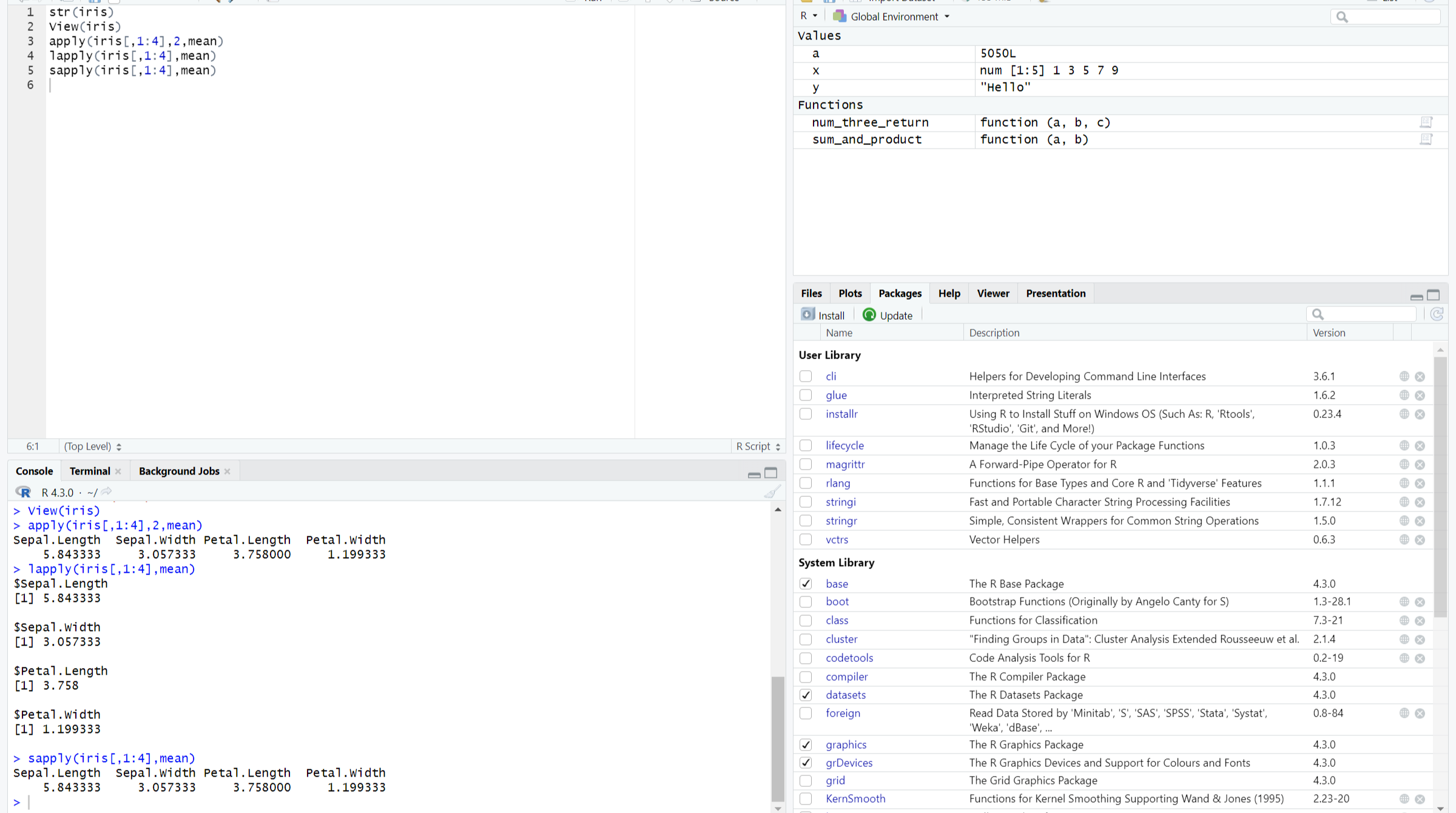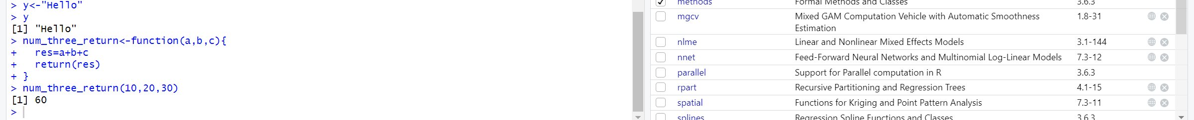 첫 번째 소단원에서는 변수와 함수에 대해 배웁니다. 변수 파트는 사실 챕터 2의 내용과도 겹치죠. 그리고 함수는 R 자체에 내장되어 있는 기본적인 내장함수와 사용자가 생성하는 사용자 정의 함수로 나눠볼 수 있습니다. 프로그래밍을 하다 보면 전자를 응용해 복잡한 후자의 것을 깔끔하게 해내는 게 관건이죠. 여기도 그런 것 같습니다. 제가 사용했던 R기반 프로그램인 Rex도 결국은 사용자 정의함수로 다양한 통계 함수를 제작했을 것입니다. 그리고 그걸 엑셀 환경에서 사용자 친화적인 플러그인 인터페이스로 사용할 수 있게 해 두었겠죠.