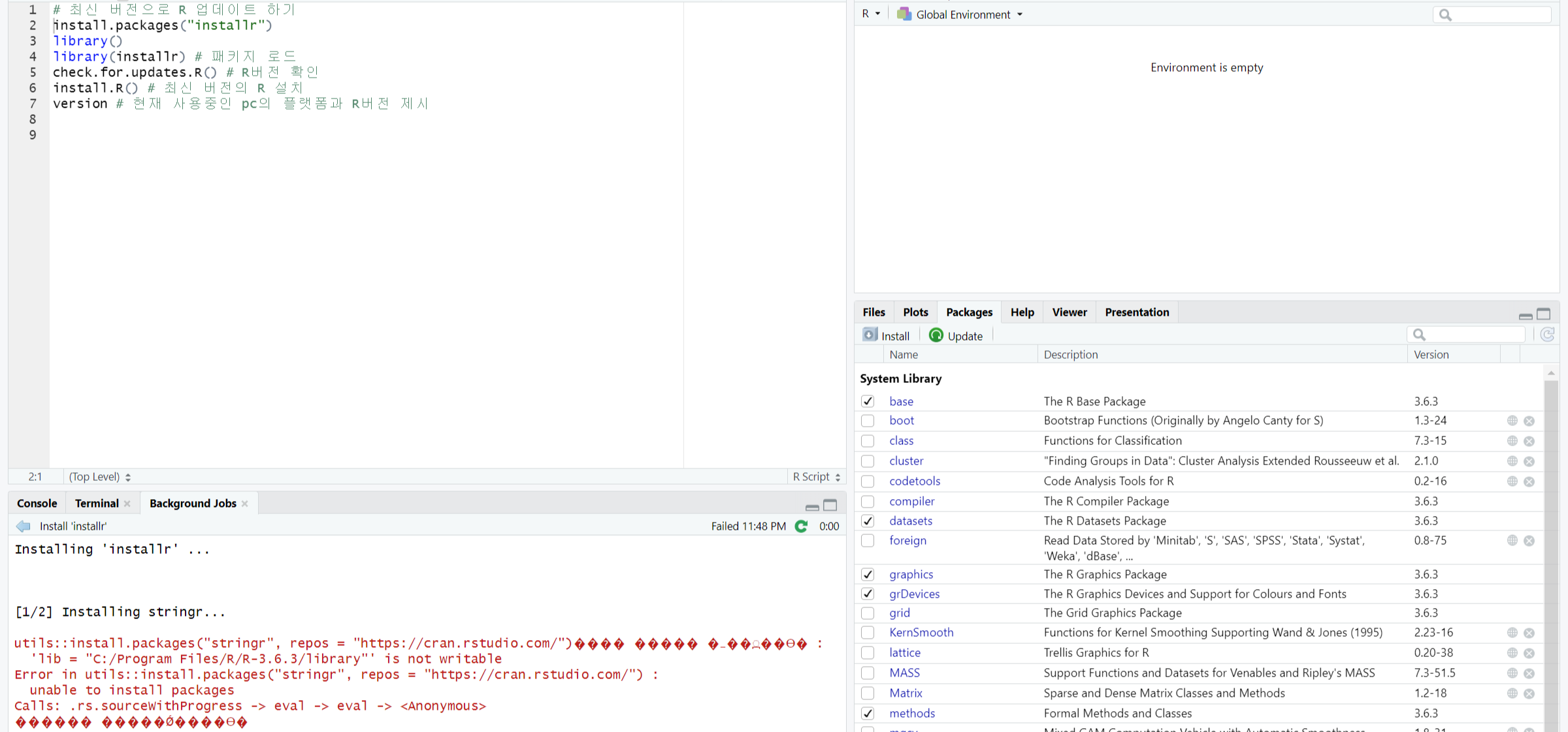 내용이 이번에도 쉬운 편이라 여행 다녀오고 주말 전에 끝내고 싶었는데, 일요일 막바지가 돼서야 마무리했네요. 생각보다 R과 R studio가 제 노트북 내에서 파일이 엉켜있는 것 같습니다. 계속 패키지 쓰는 챕터가 반복되면 R 스튜디오 클라우드를 쓰는 방안을 적극 고려해 봐야겠어요. 이걸로 족히 반나절은 날린 기분이라 썩 만족스럽진 않은 한 주였네요.