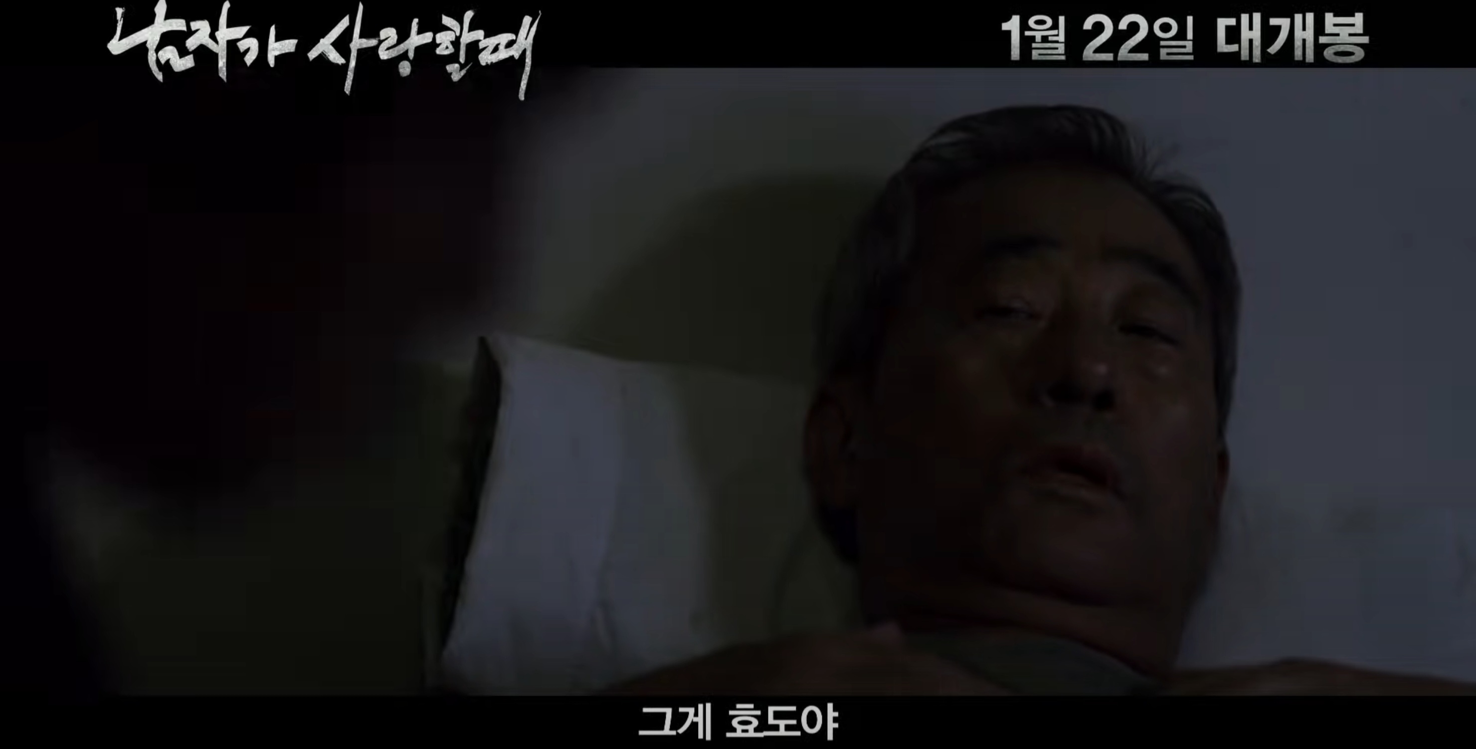 그리고 영화는 참 멋진 결말에 도달합니다. 아버지를 잃고, 그리고 사랑하는 사람마저 잃고 다시 혼자가 될 호정에게 태일은 아버지에게 부탁을 합니다. 그녀에게 좋은 아버지가 되어달라고 말이죠. 그녀는 태일의 아버지를 보면서 그를 떠올리게 되고, 똑같이 태일의 아버지는 태일이 남긴 그녀를 보면서 태일을 떠올릴 겁니다. 평생 속 썩이는 자식이었음은 분명했지만, 그럼에도 품는 게 부모의 사랑이니까요. 태일은 존중받지 받지 못하는 건달의 삶을 살았지만, 그의 말로와 사후는 존중받고 사랑받을 수 있었습니다. 그것이 남녀 간의 사랑을 넘어서, 정말 사랑하는 이에게 모든 것을 내어준 사람이라면 응당 받을 수 있는, 그것이 진정한 사랑이 아닐까요? 그런 사람이 될 수 있길 희망하면서 올해 첫 영화 리뷰 마치겠습니다. 감사합니다!