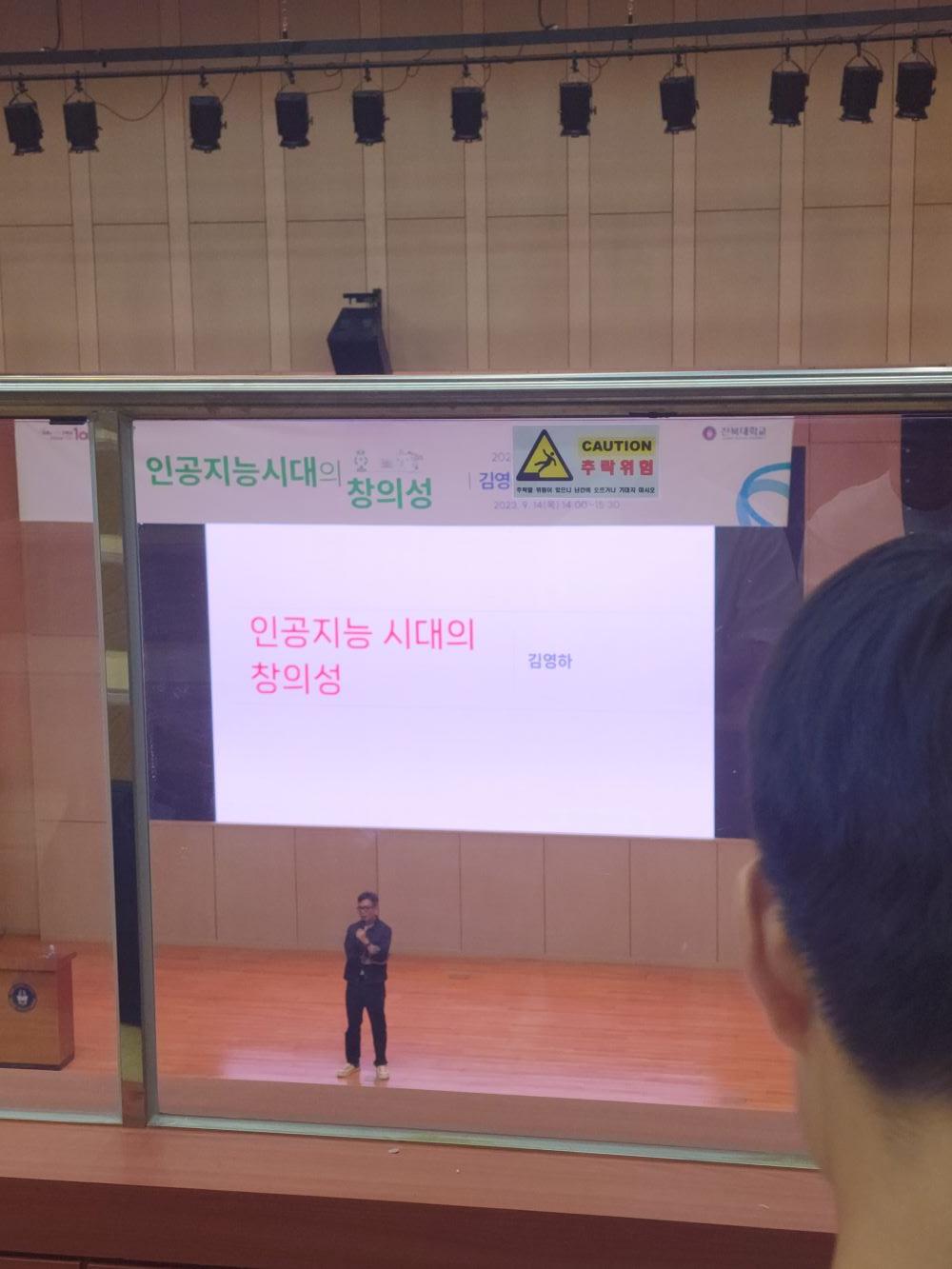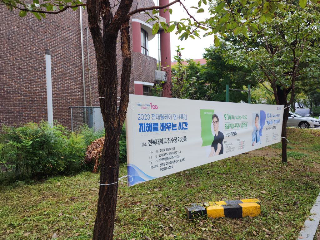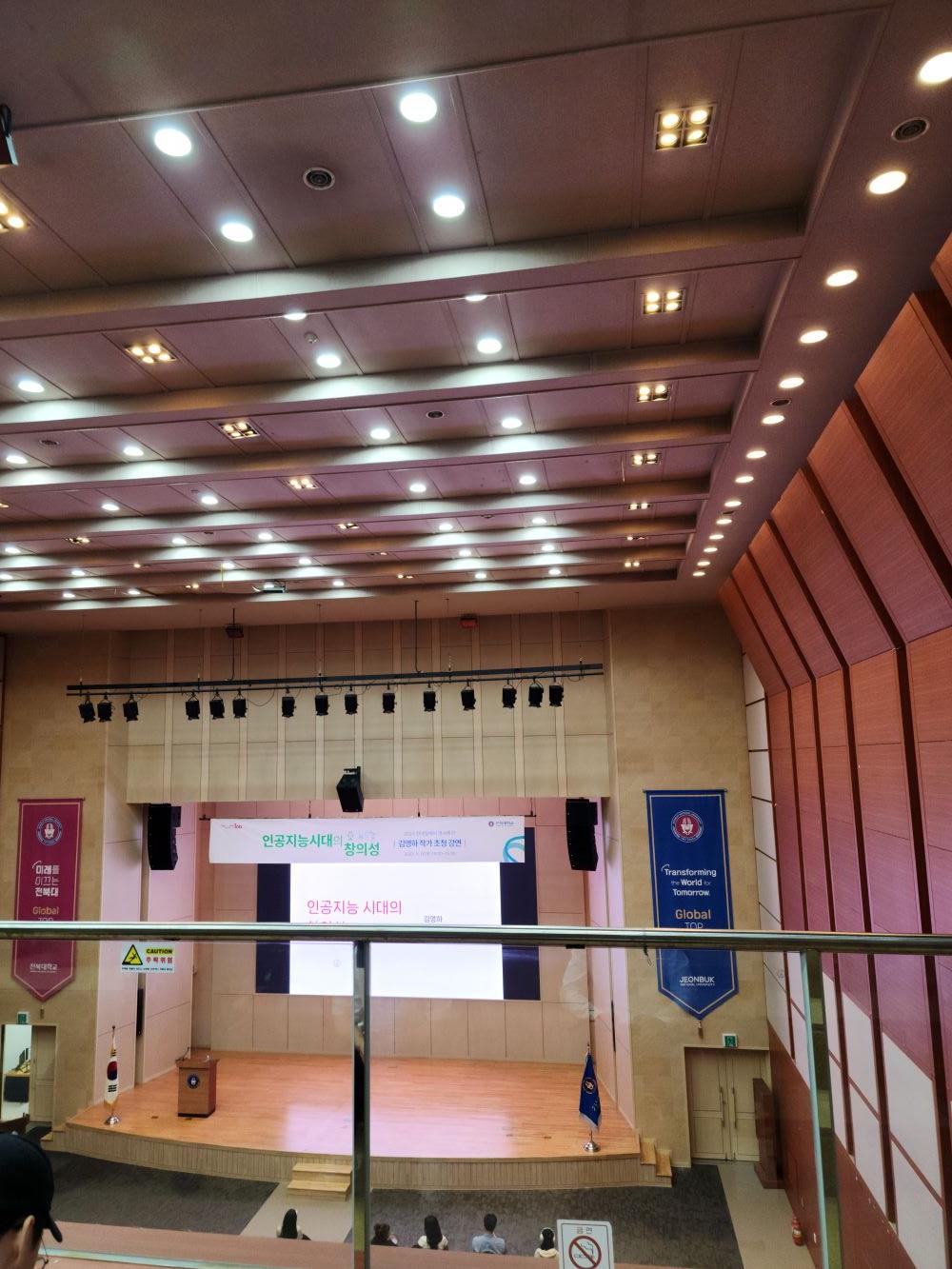 저희 학교는 지방 국립대라 그런지, 꽤나 지원이 많은 편입니다. 이미 저는 등록금 한 푼 안 내면서 오히려 장학금을 받으면서 지내고 있고요. 그리고 23년도에 접어들면서 다양한 공연, 행사, 강연들이 많아진 느낌도 받았습니다. 그러던 도중에 제가 있는 의과대학 캠퍼스까지 강연 홍보 현수막이 붙더라고요?! 심지어 TV에서만 보던 김영하 작가님과 표창원 의원님이 오셔서 강연하신다니, 군침이 싹 돌았습니다. 특히나 인공지능? 제가 아주 애정하는 주제를 갖고 멋진 작가님이 이런 누추한 곳까지(?) 오셔서 말씀을 나눌 수 있다니 정말 기대가 되었습니다. 학기 초 3주간은 큰 시험 없이 과목 진도만 무작정 나가는 시간이었어서, 본 캠퍼스까지 한달음에 달려가 강연을 보리라 계획했었습니다.