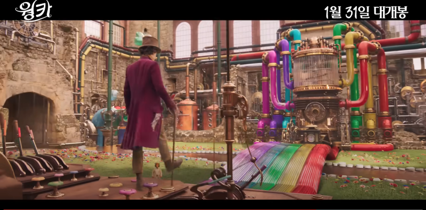 저는 이 영화를 볼 때 '위대한 쇼맨'이라는 영화가 자주 떠올랐어요. 사실 위대한 쇼맨은 너무 강력한 ost들이 많죠. 비교 우위에 가깝습니다. 그렇지만 전체적인 색감이라든지, 인물들간의 협력, 갈등, 대립 상황이라든지 뭔가 틀을 만들어 복제한 듯한 인상을 받았습니다. 그렇지만 두 작품 모두 뮤지컬이라는 요소를 잘 녹여낸 것은 분명합니다. 쇼맨에서는 휴잭맨이 지상최대의 놀라운 서커스를 연출했다면, 웡카에서는 티모시가 최고의 초콜릿을 만들어냅니다. 상상의 힘을 강조하고, 상상하는 만큼, 혹은 그것을 넘어가는 놀라운 비주얼을 선보입니다. 그렇기 때문에 눈과 귀 모두가 즐거울 수 있었던 영화였지 않았나 싶어요.