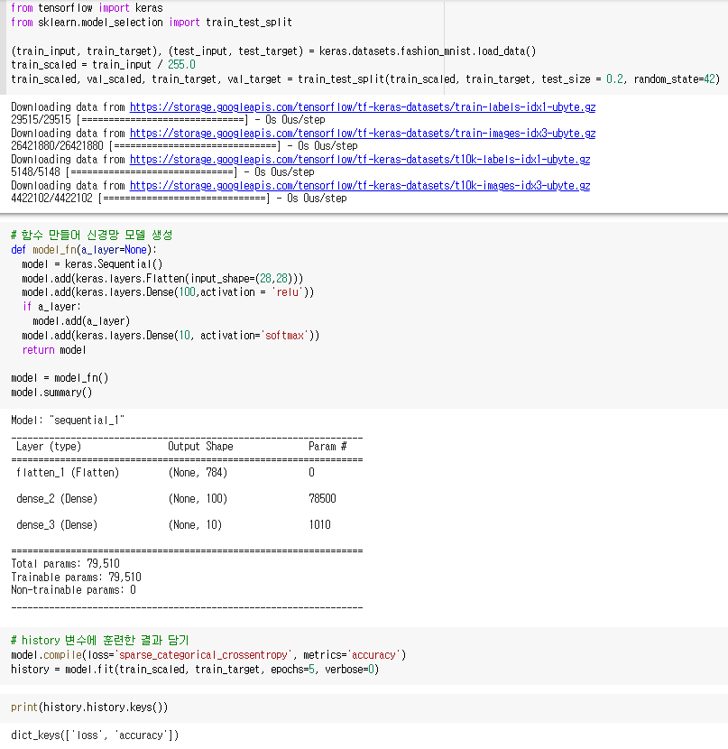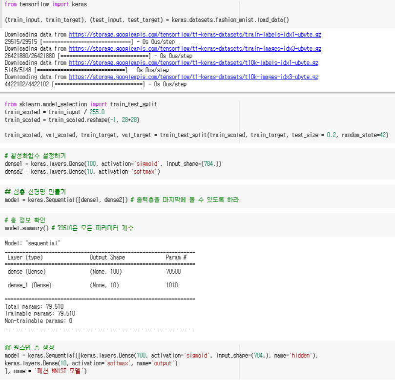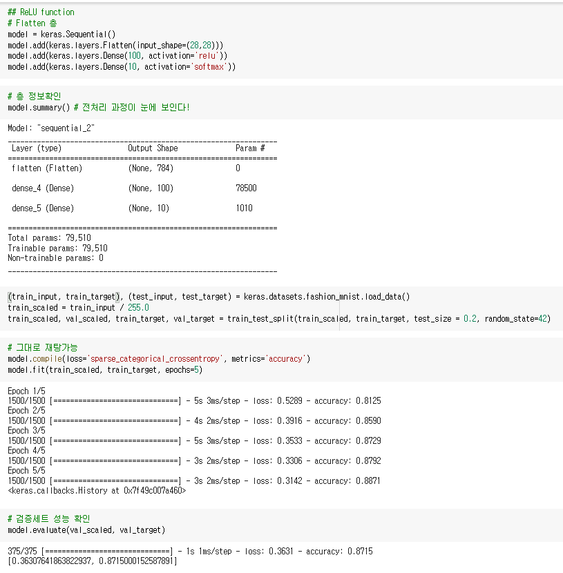 첫 번째 절에서는 가볍게 인공 신경망의 개념을 다뤄보고, 직접 만들어보았습니다. 두 번째 절에서는 은닉층을 넣어 심층 신경망을 만들어보고, 활성화함수를 비롯한 다양한 하이퍼 파라미터를 조정하는 법을 배웁니다. 마지막 절에서는 드롭아웃을 비롯한 다양한 신경망 모델 기법에 대해 배워볼 수 있었습니다.